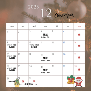 2025年12月診療日のお知らせです📣
